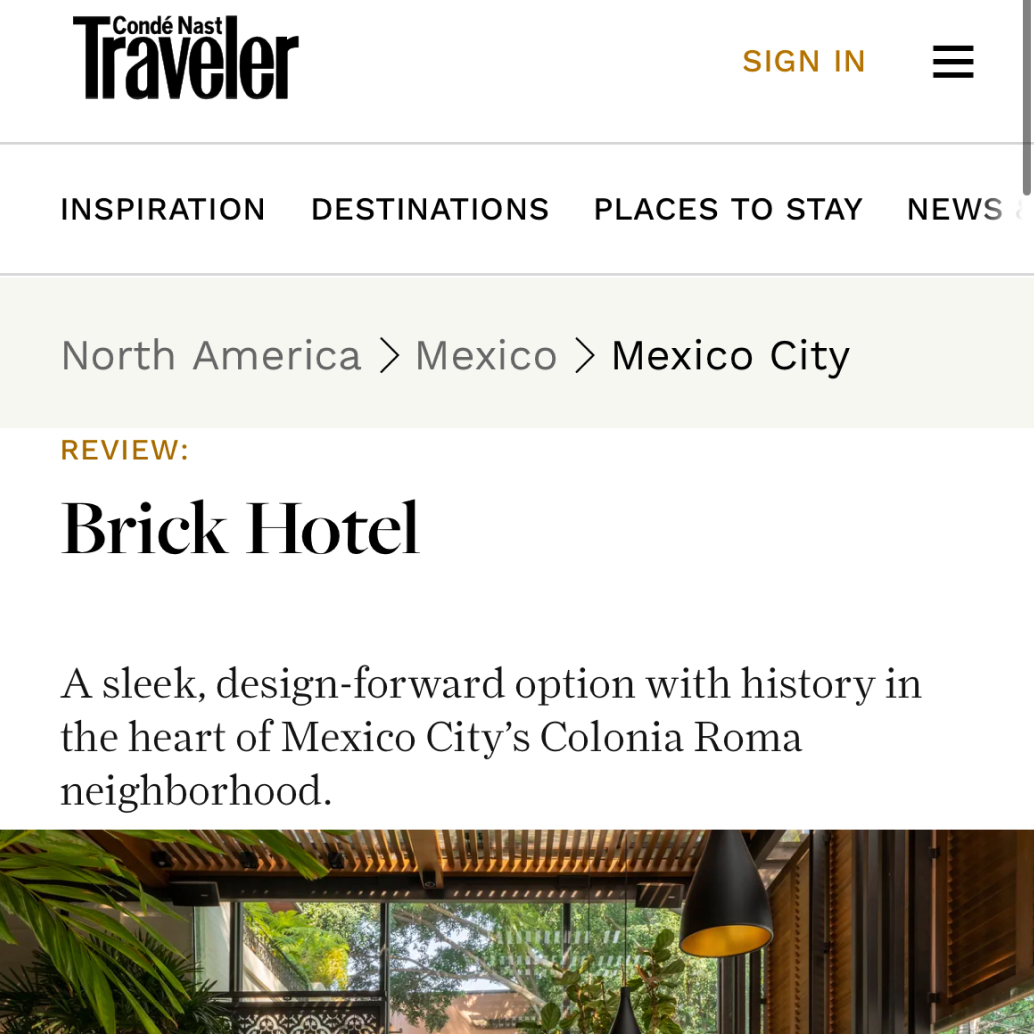 Tucked away in the Roma Norte, Brick Hotel is where history meets contemporary luxury. Built in the early 20th century as the private residence of Sir William Newbold, President of the Bank of London in Mexico, its iconic straw yellow bricks—brought from England as a ship’s counterweight—give the hotel its name and its distinctive character.