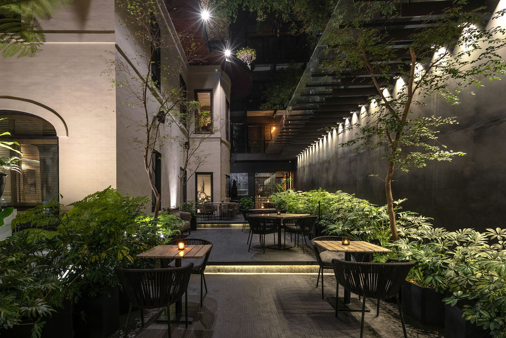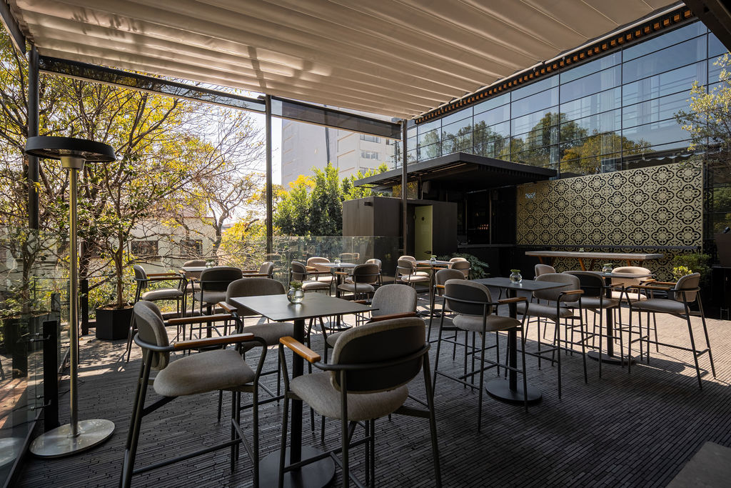 An open-air rooftop, perfect for private events, morning coffee, or sunset cocktails. A seamless fusion of nature and design, offering wide views of Roma Norte’s lush surroundings